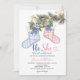 He or She Santa Socks Christmas Gender Reveal Invitation