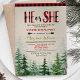 He or She Winter Lumberjack Forest Gender Reveal Invitation