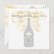 Modern lacy styled silver / grey champagne bottle decorated with bubbles, grapes, vines and love birds. A burst of gold spray completes this fun yet elegant card.The other side show a lacy style champagne / wine glass. Very unique and Great for Engagement, Bridal Shower, Bachelorette Parties or Girls Night Out Celebrations. Customise this invitation with your own text. Original Illustration by pj_design.