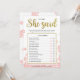 This modern floral "He Said She Said" bridal shower game features a pink floral background with golden glitter splashes. The text is written in a mix of a playful calligraphy font and a modern sans font, this He Said She Said card is personalised with the Bride-to-be name and the Bridal Shower date.