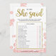 He Said She Said Bridal Shower Game | Gold and Pin