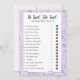 This version of "He Said, She Said" showcases a pristine white background adorned with a captivating border of delicate botanical leaves in a soft, light purple hue. The design adds a touch of elegance and nature-inspired beauty to your bridal shower, creating a visually stunning game that perfectly complements the joyful ambiance of the event. Moreover, the back of the game features the same enchanting botanical leaves border, providing a cohesive and aesthetically pleasing experience for your guests.