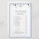 A charming addition to your bridal shower festivities, this “Who Was First?” game adds a hint of playful romance to the table. With its elegant typesetting and watercolor florals, it effortlessly elevates even the most lighthearted moments.