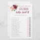 This bridal shower game is a He Said, She Said guess who said it game. It features watercolor dusty pink, burgundy roses and leaf foliage with string lights. Personalise the text on the back with the bride's name. Matching products available.