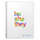 he she they Pronouns Notebook. The perfect design to make a statement right on your notebook. Add your name for personalisation.
