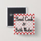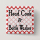 Head Cook and Bottle Washer funny kitchen saying. Zesty food humour in retro letters on a red and white lattice background for a vintage look. Fun food and kitchen humour slogans for cooks by MomsRetro.com.