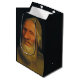 This design features a painting by the Flemish artist Quentin Matsys (1466–1530), who worked in the Early Netherlandish tradition during the period of the Northern Renaissance. It depicts an elderly man with a grey beard and grey hair. His eyes are blue. The old man is wearing a simple cloak with a hood covering the back of his head. The original artwork was painted by Quentin Matsys in 1525.