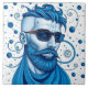 Head Of Bearded Blue Alien With Glasses Sci-Fi Art Ceramic Tile