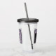 This acrylic drink tumbler with straw and lid has an illustration of the head and wing of a black crow on a purple background with an ornate black border.  customise your text with the template.
