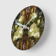 Beautiful collage of vintage botanical fine art of Magnolia Flowers on Gold Velvet by MJ Heade is on this Magnolia Flowers Wall Clock. Image is public domain due to expired copyright. Collage is by me.