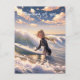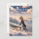 Anime painting of a woman in a wetsuit with her surfboard heading out again to catch another wave.