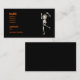 Black business card with my artwork of a skeleton who misplaced his head.