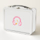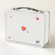 This is a standard metal lunchbox that appears to work just fine. We designed this box ourselves with an uploaded photo and custom text on the front and back. It looks absolutely beautiful except the front of the lunchbox is not centered like it shows in the photo. The print borders don't align with the inset flat part of the box where the preview photo online showed it perfectly centered in there. The back looks nice and centered though.