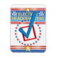 This image is done in colours of red, blue and white. A star and "Election Headquarters" are done in gold. A red checkmark in a circle of blue and red stars. This magnet is available in assorted shapes and sizes.