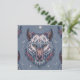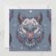 Multicolored heads of wolves with boho decoration and sacred symbols on a grey background. Seamless pattern with contour tribal drawing of predators. Vector texture with animals. Native wallpaper