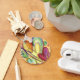 The keychain art features overlapping hearts in a rainbow of colours. The heart images are both drawn and painted in watercolor. A single large heart is in the centre. The art is a tribute to the healing power of giving and receiving love in our lives.