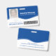 Navy blue essential workers health allied services ID identification badge personalize with your employee's photo, name, job role, company logo, company name employee number and a barcode for entry into restricted areas. Lost or other important information on the reverse. Design by www.mylittleeden.com