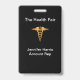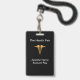 Classy health fair business event badges with image of a gold coloured caduceus symbol and text you can customise with the name of your event, company name, and or name of the representative. Designed for health care industry promotion and can be worn at a local convention or as office staff badges.
