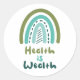 It features a colourful boho rainbow with a motivational short quote (Health is wealth on motivational boho rainbow in blue colour).