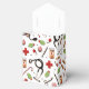 Medical themed Christmas holiday party gift favours box featuring healthcare supplies, Christmas treats, and holly.