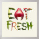This vibrant "Eat Fresh" poster features lifelike images of fresh produce including tomatoes, green beans, carrots, and spinach. The clean, photorealistic quality makes the fruits and veggies look so real, you'll almost want to reach out and grab them off the poster. Perfect for your kitchen or dining room decor.