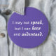 A pin for people whose ability to speak is not quite as good as their comprehension, or who are shy and tend to keep quiet.