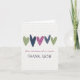 These heartfelt 4" x 5.6" thank you cards feature whimsical decorative hearts in navy blue, magenta, and avocado green on a light avocado background. The card front EDITABLE greeting is, "From the bottom of our hearts, thank you." The EDITABLE message inside is, "It's people like you that make this a better world." There is a placeholder for you to add your name(s)