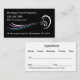Hearing aids and audiology medical office appointment business cards in a sleek modern two side design making use of both sides with an ear graphic and your business details on the front along with an appointment template shown on the back. Leave these in your waiting room for your patients on the way out of your office. A design you can customise online for an Ear doctor or hearing centre.