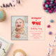 Heart first birthday. Great theme for a February or Valentine's day birthday. Photo template via Pixabay licensed under CC0 and must be replaced with your own photo