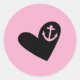 heart and anchor pink classic round sticker