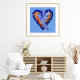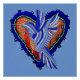 Image of an embroidered heart in cobalt blue, turquoise and orange colors, with a beautiful bird in flight. The bird is embroidered with stripes in shades of blue. Latino design inspired by Latin America folk art. An inspirational gift to celebrate Hispanic Heritage Month. Colorful design of bohemian and ethnic style. Tribal and indigenous look that honors Hispanic culture. This image comes from handmade art. The beauty of handmade lies in its imperfections. Thank you for visiting my joyful corner.