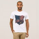 This t-shirt is a patriotic statement of love for your country. The centred design features a detailed flag, billowing gracefully, with an overlay of a hand over a heart. The simplistic, centred vector illustration is set against a solid, light-coloured background, making it a perfect way to show your love for your country.