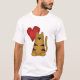 A big red heart and a striped orange and black cat are featured on these cute cat lover T-shirts, mugs, stickers, magnets, tote bags, cat buttons, cards, and much more.
