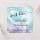 This distinctive card could be the perfect way to announce that your wedding date has been changed. The background has been covered in a dreamy watercolor wash in hues of aqua, turquoise and light purple. Overlaying that is a partially-opaque heart with a vintage painted watercolor white surface that enables your background colour to show through. I've used a distinctive modern font with swirling accents to create a graphic depicting the words "new date" which is positioned at the top, quite large. Use template fields to add your personal details and update the placeholder message as needed. I'm happy to help with customisation if you need assistance. // 57 //
