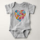 Celebrate your love for your tiny baby with this adorable heart baby clothing one-piece. The heart is made up of tiny hearts in reds, blues, and oranges to collect all your love into your heart. This design is gender-neutral and great for any size baby bodysuit.