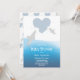A baby shower invitation showing a Mum and baby shark taking bites out of a big heart. The text is all customisable. The back of the invitation has a shark and heart pattern.