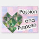 Abstract heart collage wall art featuring a soft pink and purple pastel sunrise background arranged in a quilt-inspired pattern. This mixed media artwork uses layered paper textures and blended color fields to create a unique heart shape, combining green, yellow, and pink tones for a modern, organic look. The soft, fuzzy collage elements add depth and movement, while the phrase “Passion and Purpose” brings an inspiring message. Perfect for boho home decor, romantic spaces, or as a meaningful gift, this colorful abstract art print adds warmth and personality to any room.