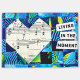Colorful heart collage featuring a quilt-inspired design made from vintage sheet music. This mixed media artwork combines musical notes with a vibrant tropical fish background in bright turquoise, accented with yellow tones and playful patterns. The composition blends texture, color, and movement for a modern, eye-catching look. Finished with the phrase “Living in the Moment,” this piece is perfect for boho home decor, music lovers, or as a unique artistic gift.