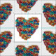 Colorful heart art collage with hippie car, hippie van, red heart and butterfly custom combed cotton fabric.