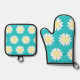 Heart Daisy Pattern Oven Mitt & Pot Holder Set