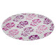 Leaf and scroll heart shaped damask with detail in pinks and plums on a white background in a off-set patterned print.