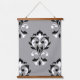 Heart Damask Lg Pattern I Black+White on Grey Hanging Tapestry