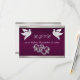 Design features linked hearts and doves on a purple background with ribbon borders, stylish script place holders for the date on the front, and response information on a white pearl back. Perfect for the simple to most elegant wedding. Available in several colours for your wedding theme. (Ribbon is simulated in the artwork). Designed to coordinate with the "Two Shall Become One - Silver & Gold" Wedding Collection. To change details, click «Personalise». To move the text or change the text size, font, or colour click «Click to customise further»