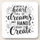 Inspirational coaster with the phrase "With a heart full of dreams and hands ready to create".