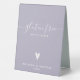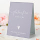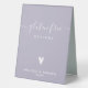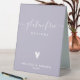 NewParkLane - Sophisticated personalised Table Tent Sign for the gluten free options at your buffet, with 'Gluten free' in elegant whitescript typography /calligraphy with swirls, a cute tiny heart, against a lavender / purple background.