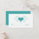 Simple yet elegant Heart Flourish Wedding Place Card design in teal featuring a big heart decorated with cascades of flourishes and dots flanked by smaller whimsical hearts. This stylish wedding escort card sets the tone for a sophisticated affair. Space is available on this design to write in the names and table numbers where each of your guests will be seated. Click on the "Customise It" button to find additional personalisation options.