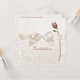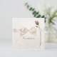 This elegant and lovely romantic wedding invitation has a background in soft shades of ivory to pale blush with flourish swirls and small hearts, decorated with a digital satin ivory bow rosebud (both which can be removed from the design if you prefer.)