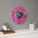 This custom wall clock features a Valentine love theme with a photograph heart frame. The background is a blush pink silk textured pattern with diamonds style frame. A sample photo is placed in the centre.