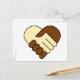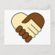 A black man and a white men shaking hands. Heart shaped symbol or logo on postcard