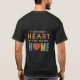 A vibrant t-shirt design featuring the text "Heart Home" in a spectrum of colorful letters. The text is bold and occupies the center of the shirt, creating a visually striking look.